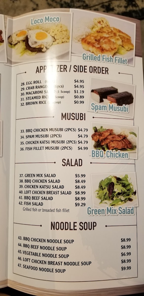 Guests often enjoy dishes like their Mini Chicken Katsu or Spam Rolls for a quick, flavorful bite whether on a lunch break or a casual dinner. The Aloha Family Pack is perfect for gatherings, bringing generous portions of rice and classic sides that invite sharing and conversation. Fresh salads with BBQ beef, grilled chicken, or fish options provide lighter, refreshing choices that complement the warm, friendly atmosphere.